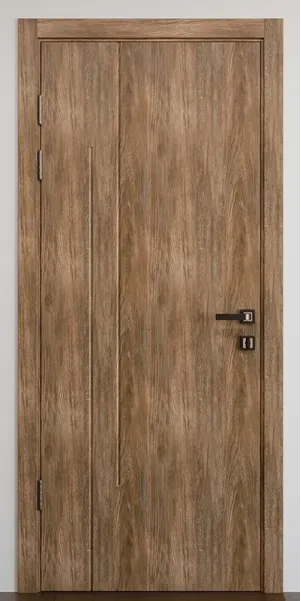 Каркас полотна производится из евробруса (собственной сушки), который покрывается МДФ накладками толщиной 20 мм, после чего полотно покрывается полимерным шпоном (экошпон), идеально имитирующим структуру натурального дерева. Это технологичный, экологически чистый многослойный материал нового поколения, не уступающий ничем натуральному шпону и имеющий ряд преимуществ. В этом материале очень много вариантов оттенков. Так же полотно может быть покрыто четырьмя слоями высококачественной краски немецкого или итальянского производства любого оттенка по Ral. Покрытие на полотно наносится на все 360° – это придает ему большую влагостойкость и позволяет устанавливать такую дверь в помещение с повышенной влажностью воздуха, например санузлы и кладовки. Дверь данной серии оснащается надежным и высококачественным механизмом открывания по принципу "двери-книжка". Благодаря такой системе значительно экономится место в комнате при открытой двери. Это особенно актуально для небольших жилых комнат. Короб дверного блока производится сплошным на всю ширину стены – благодаря этой технологии нет необходимости докупать и дополнительно устанавливать отборную планку. Врезка петель и механизма производится на профессиональном оборудовании при изготовлении дверей, благодаря этому при монтаже не требуется выполнять данный вид работ. В результате помещение остается чистым после монтажа такой двери.