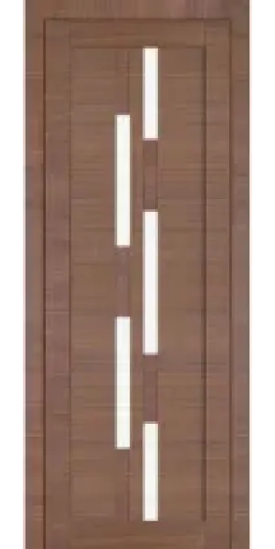 Шпонированные - двери покрытые шпоном дуба. Среди шпонированных дверей есть модели с сотовым наполнителем и МДФ филёнкой. Шпонированные двери по цене обычно дороже ламинированных, однако и качество самой двери лучше.