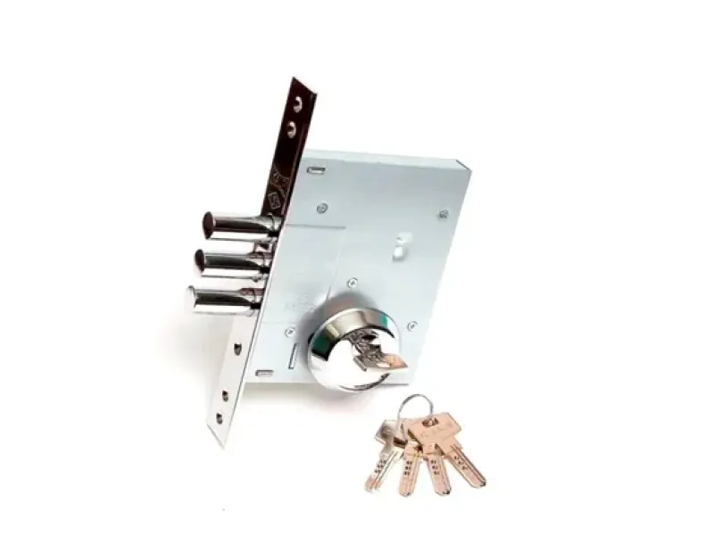 Пристрій, призначений для утримання вхідних дверей в закритому положенні. Як правило, оснащується натискною ручкою. Замикання відбувається за допомогою косокутного ригеля – «язичка», який після закривання приводиться у вихідне положення завдяки вбудованій пружині.