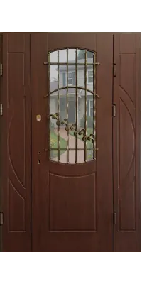 Уличная трехстворчатая дверь со стеклом и ковкой модель «Сезар» изготавливается под заказ!